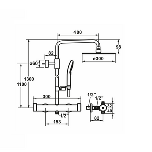 Ausladung A 400 mm | Höhe ca. 1300 mm | Anschlussmass 153 mm